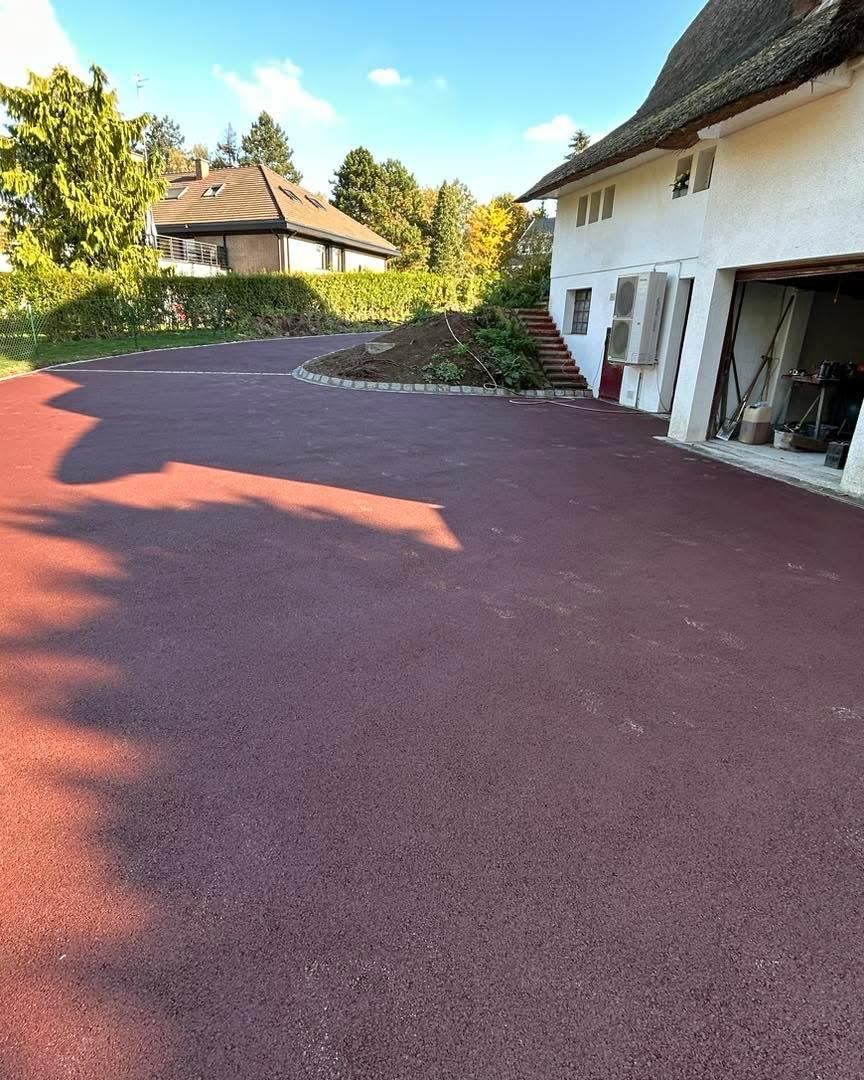 Nous proposons différents types d’enrobés selon vos besoins et vos envies : noir à chaud pour sa robustesse, rouge pour un aspect plus élégant, ou gravillonné pour un rendu naturel et chaleureux. Quelle que soit la finition choisie, nous assurons un résultat à la fois solide, esthétique et facile d’entretien, qui valorise durablement votre propriété.